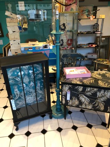 Welcome! Shop here for unique upcycled vintage painted furniture. Use the menu for boxes, trays, mirrors, shell earrings 👆