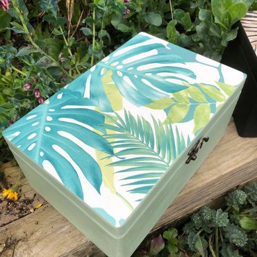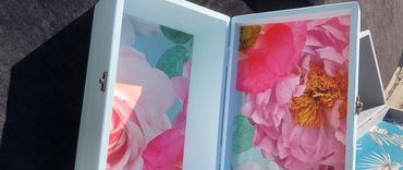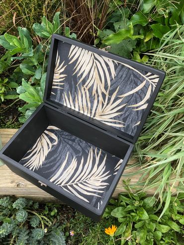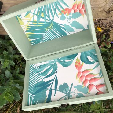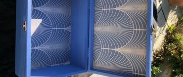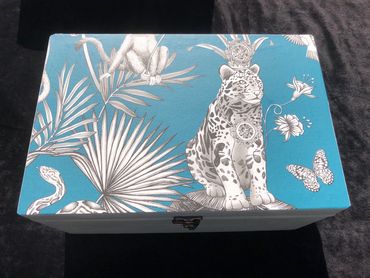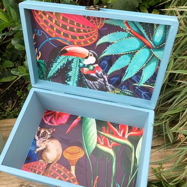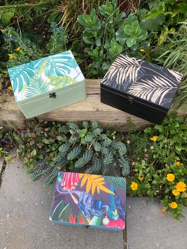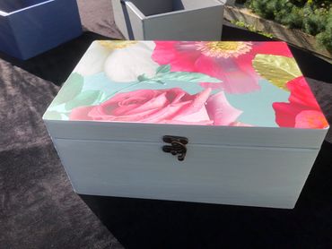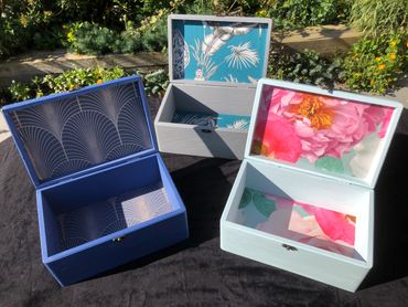 I‘ve primed them, painted with two coats of paint then sealed them for protection. I’ve added a little clasp on each one. I’ve covered the lid and interior with paper to complement the paint colour. I’m happy to make these to order in your choice of colour and pattern.